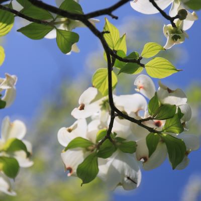 ありました、ありました。満開のハナミズキが白、ピンクが乱舞している。