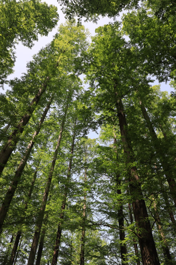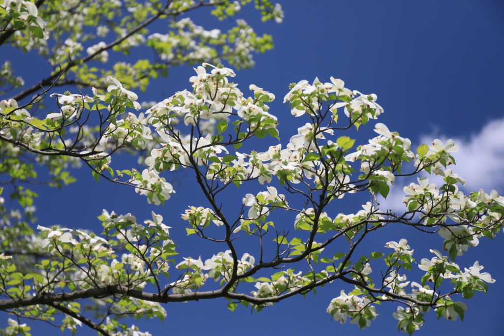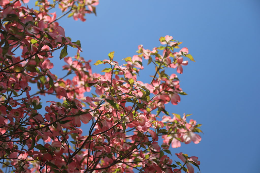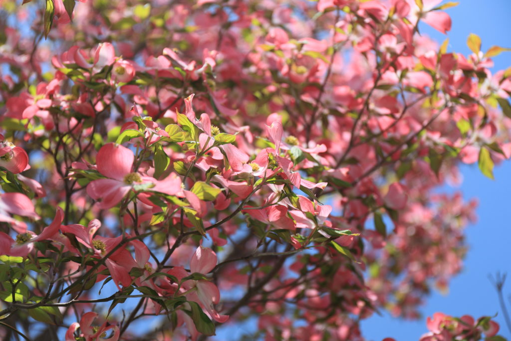 白とピンク色のハナミズキが交差し、咲き竸る光景もいい。濃い緑のメタセコイアとあわせ、ギャラリーにアップしました。観てやってください。