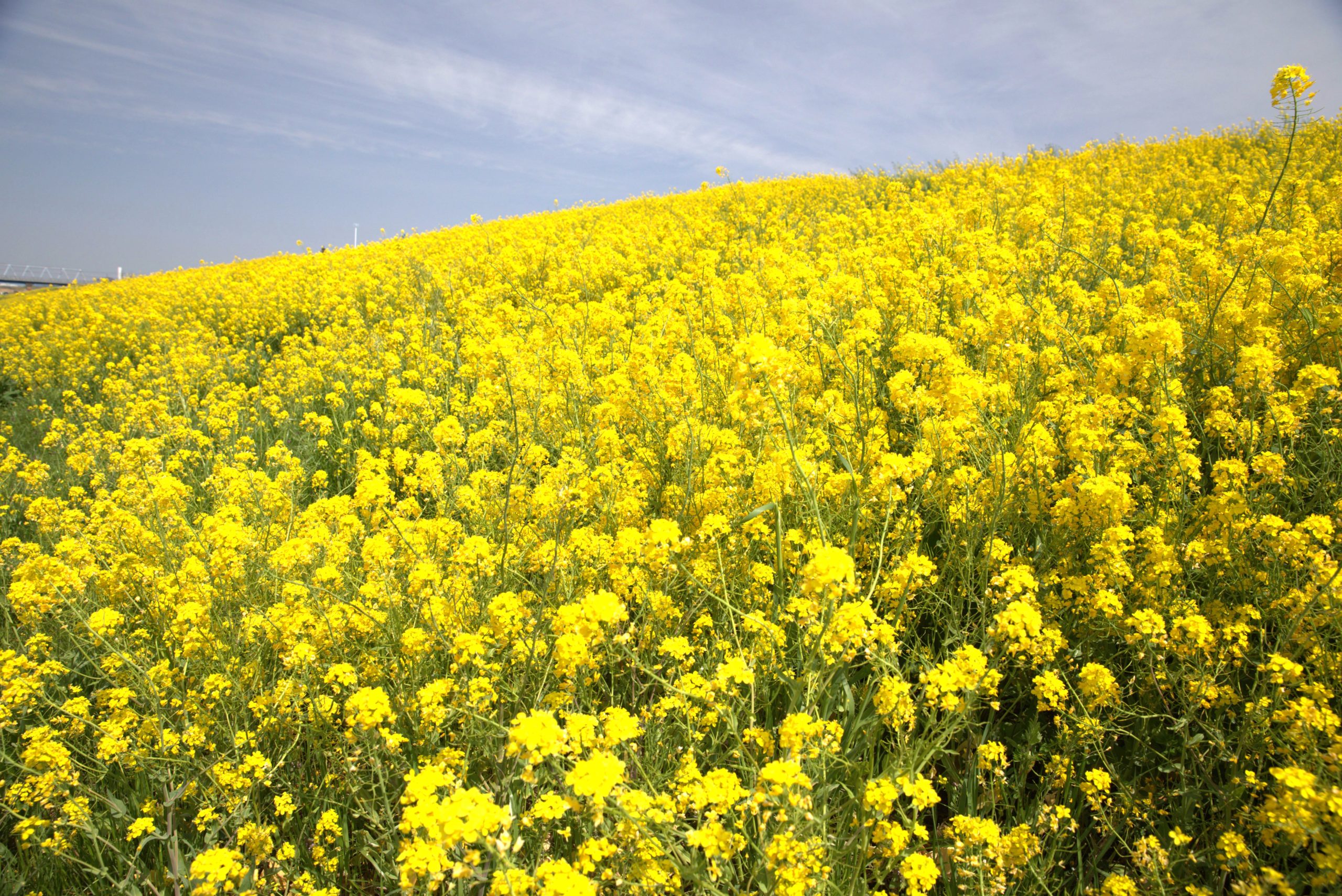 土手を降りるとき、菜の花の香りが最高にいい匂い。蜜の香り、春のかおりです。