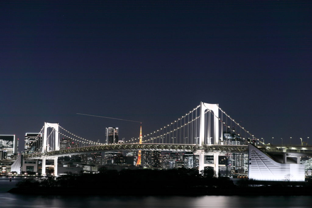 数分の時間では豊洲まで移動できない。やむなく、夜景だけになってしまった。しかも白い橋桁が強いスポットで光っているため、減光フィルターを掛けたが、部分的な減光は難しい。やや暗い夜景になったが、数枚アップしました。
