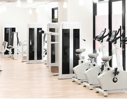 幸い当方の住んでるマンションから歩いて10分は掛からない。私はクロスバイクで行きます。5.6分位走るとマンションの1階に100平方メートルくらいの広さで、簡単操作でトレーニングできるマシーンが程よい間隔で並んでいる。12種類20台だった思います。