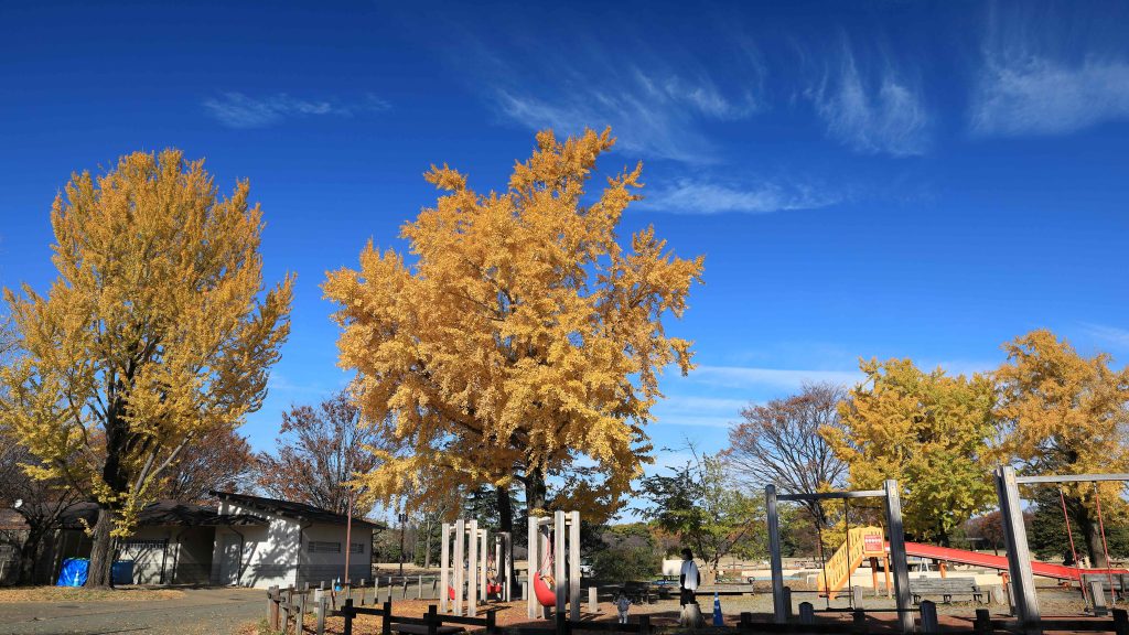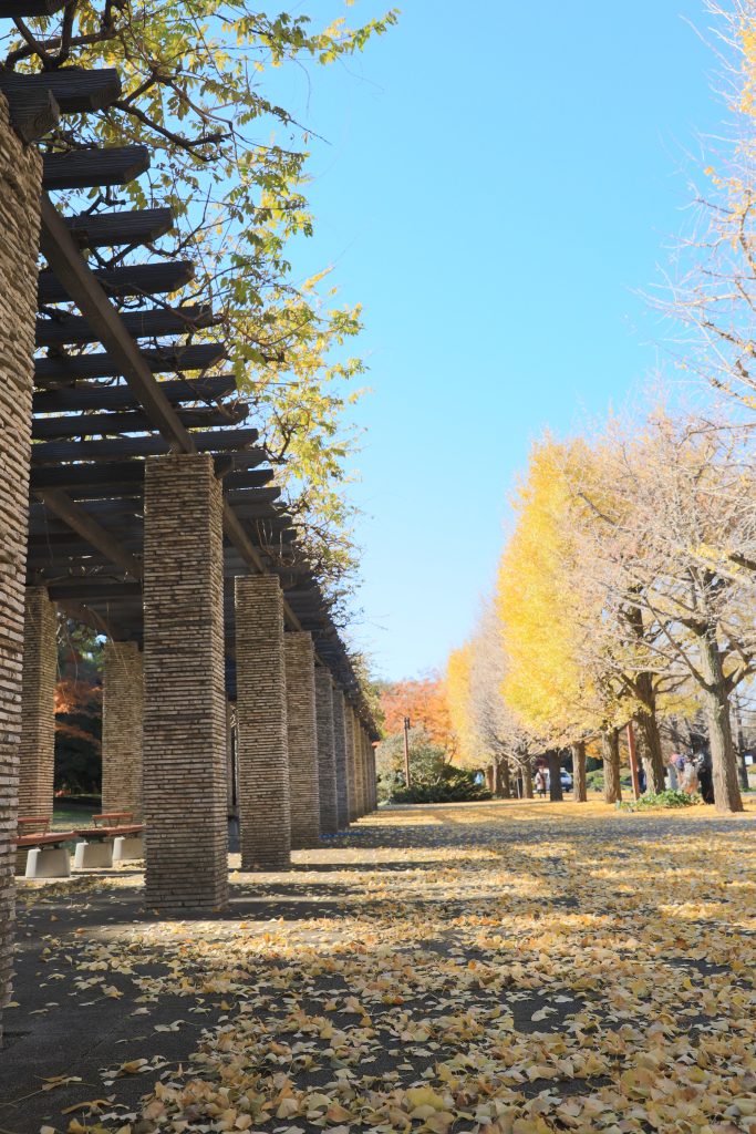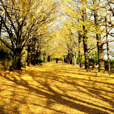 ここはイチョウ並木の定番中の定番スポット。昭和記念公園。過去には仕事でも何度も訪れ、アクセスマップもだいたい頭にある。今日はイチョウ並木を中心に回ってみると、残念!半分散ってしまっている。並木道は昭島口に近いところと、立川口近い立川口カナールの両側。各入口にはしっかり葉の残っている木もあるが、並木道は断念でした。昭島口は300mの長い道の両側に黒い木の上に金色の葉がついている感じ。カナールは200mあるか。ここは本来ならば、きれいな水の張った池に両側のイチョウが映るリフレクションである。また、いろんな色の石を敷き詰めた豪華な石畳が、華麗だ。それを知っているだけに、1割くらいの期待を背負って訪れたのが、、、残念でした。今日の状況を2、3枚アップしました。