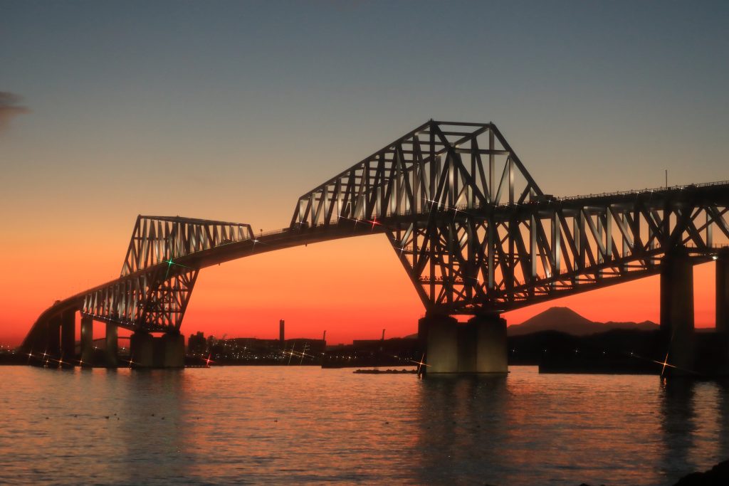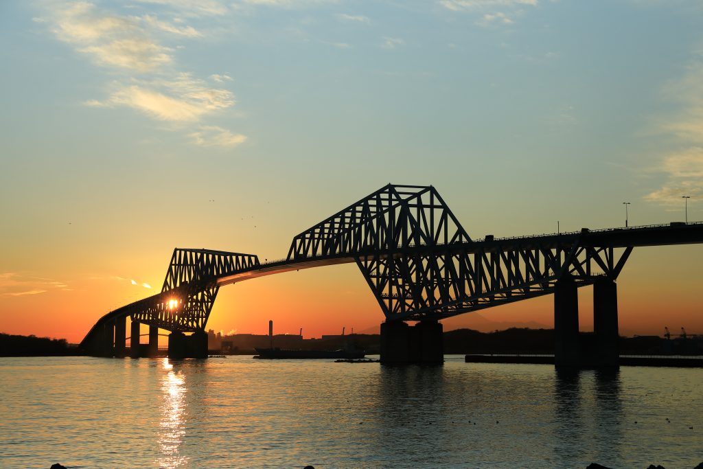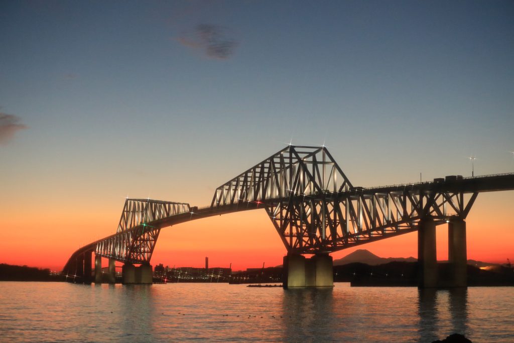 さて、東京の象徴的な景観の一つ、ゲートブリッジについてご紹介しましょう。この未来的なデザインの大橋は、まるで都市の現代的な進化を物語っているかのように見えます。